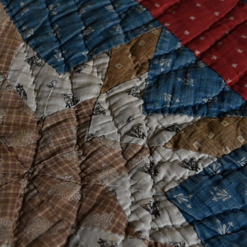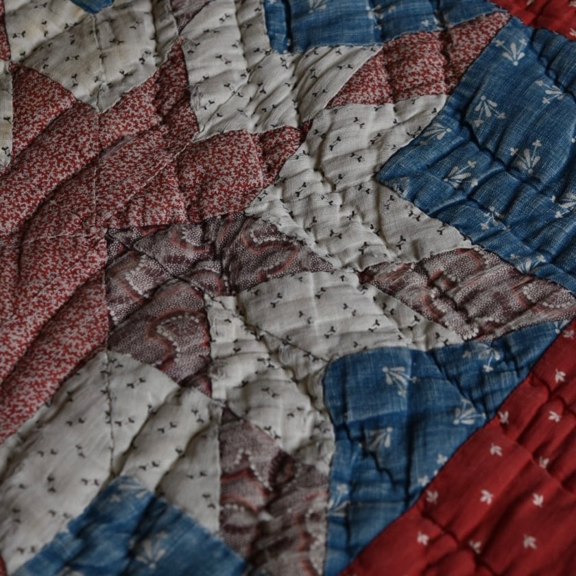 インディゴキャリコをはじめとした、複数のキャリコが使われており、