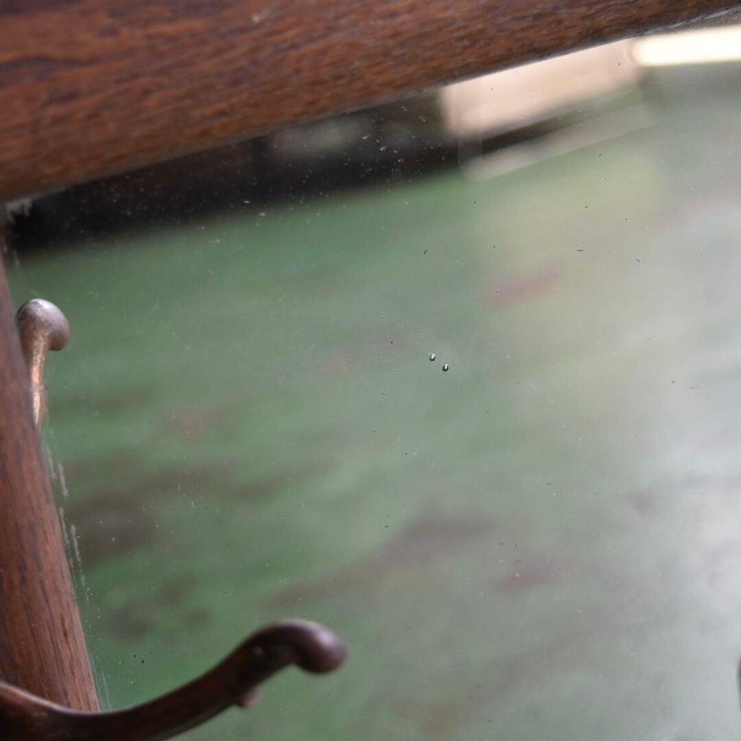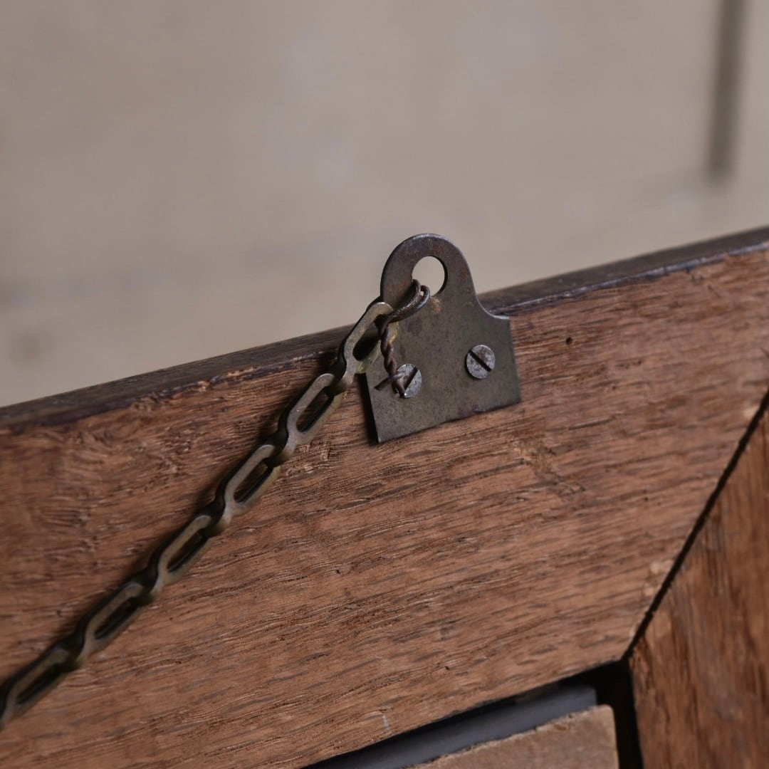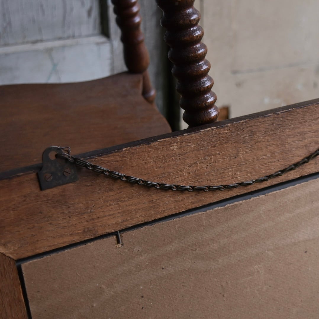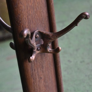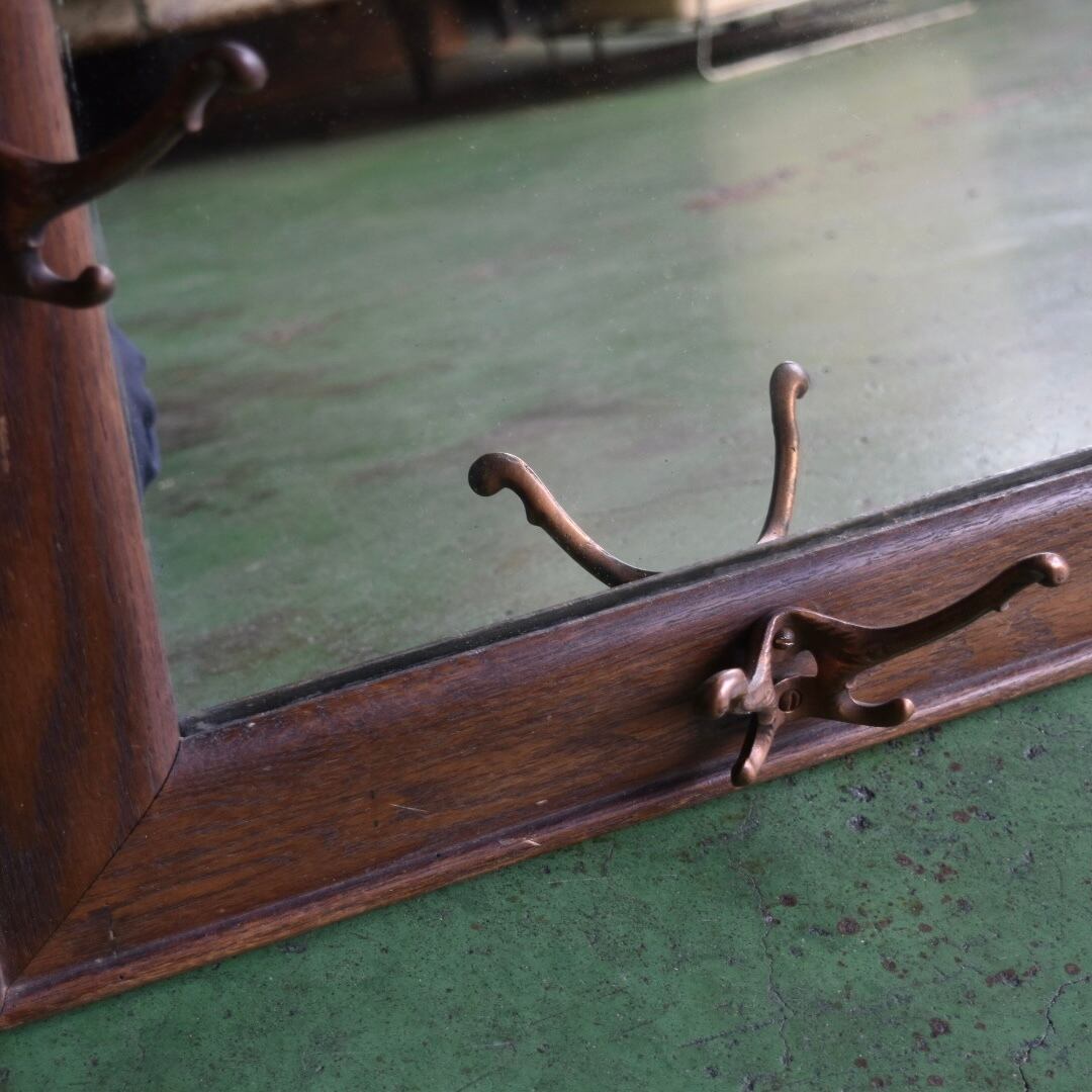 オーク材がフレームに使われた、フック付きのウォールミラー。