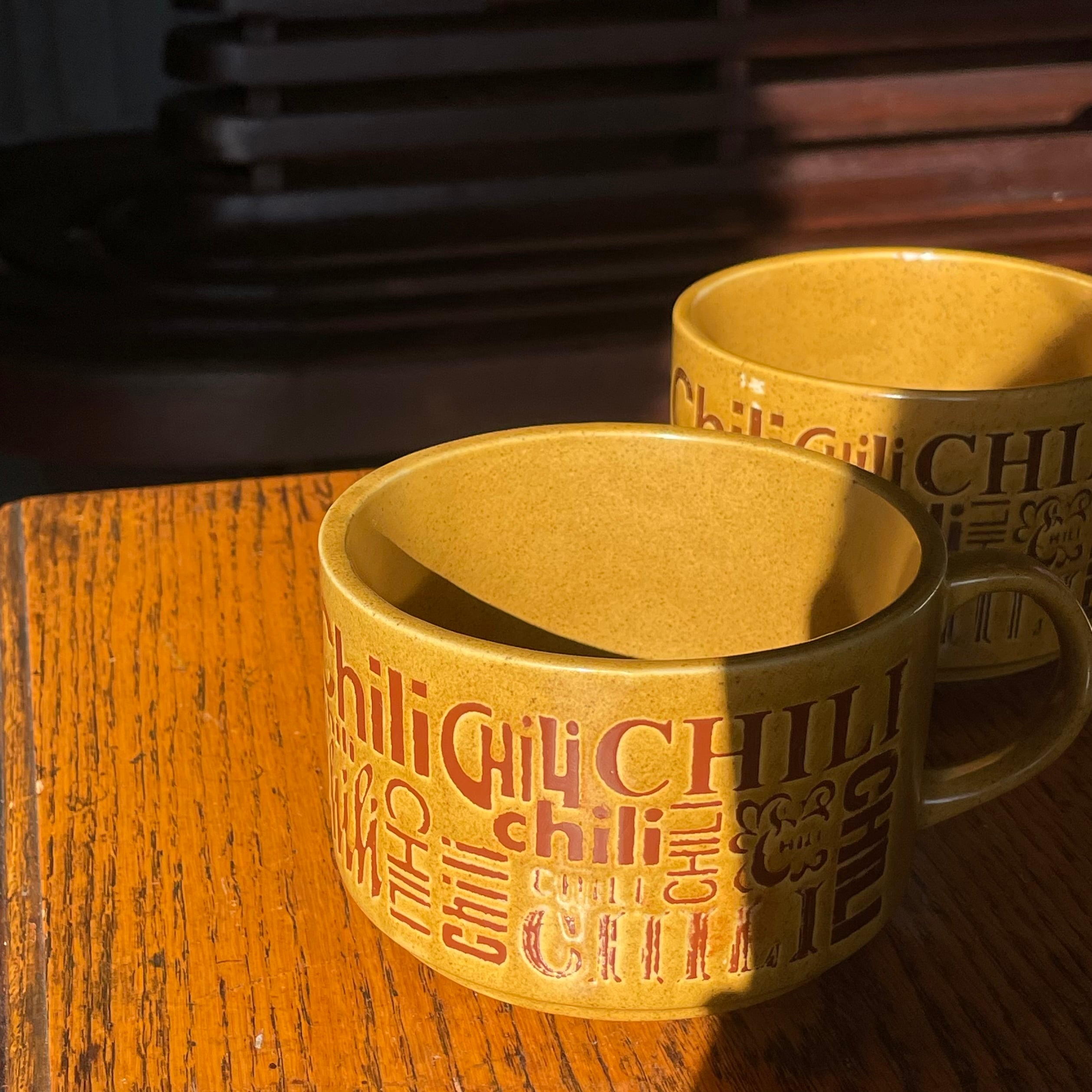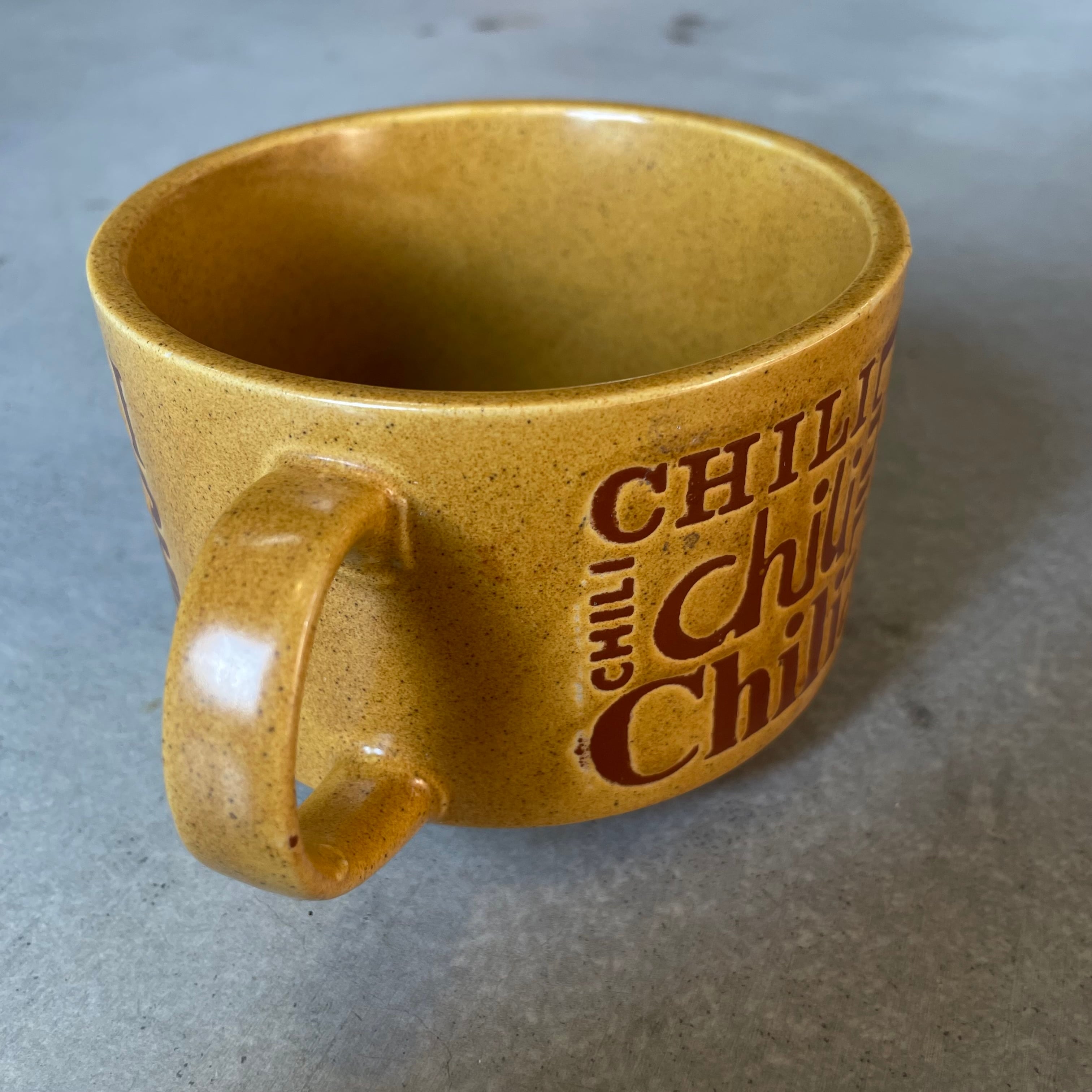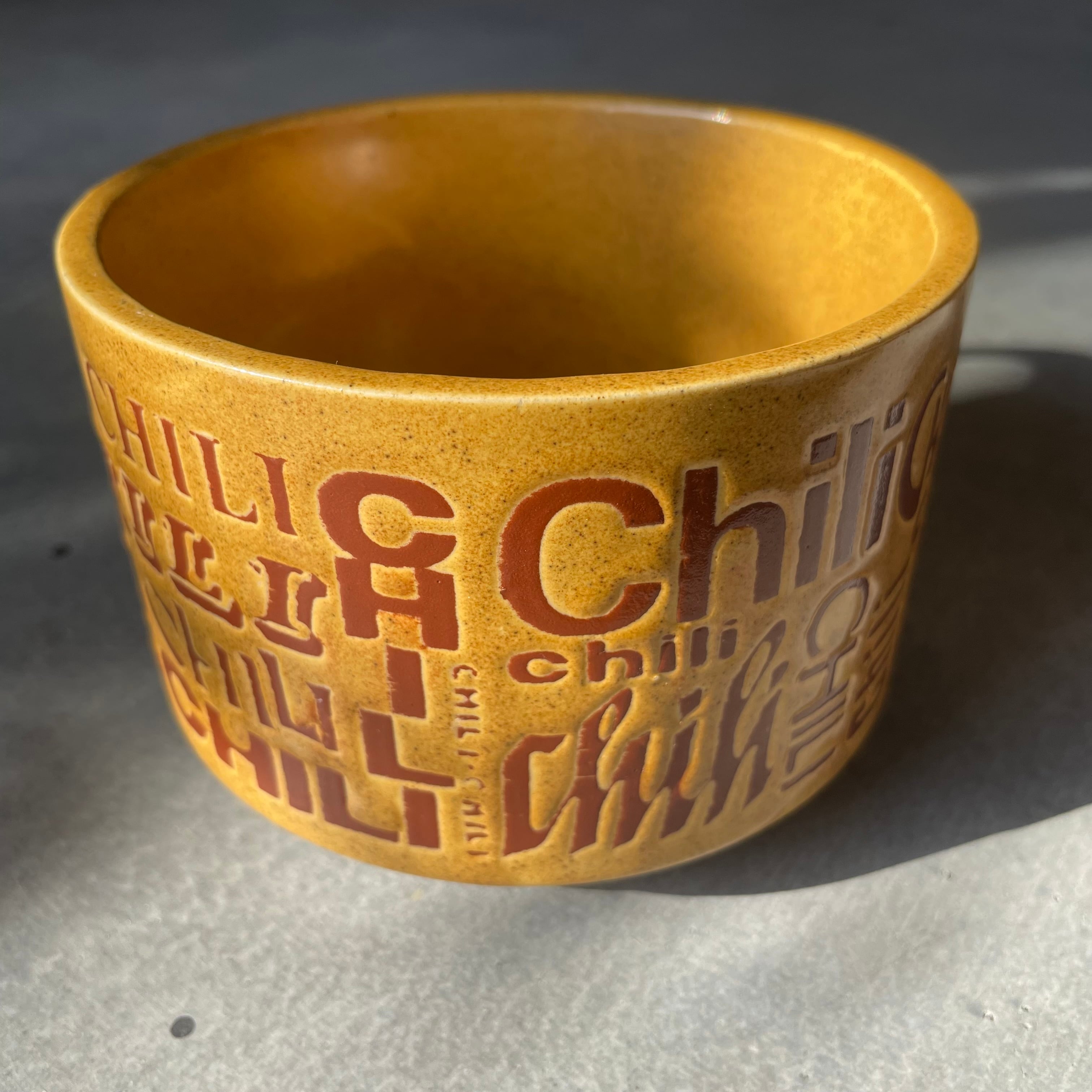 マスタードイエローをベースに「CHILI」の文字がさまざまなフォントでデザインされています。